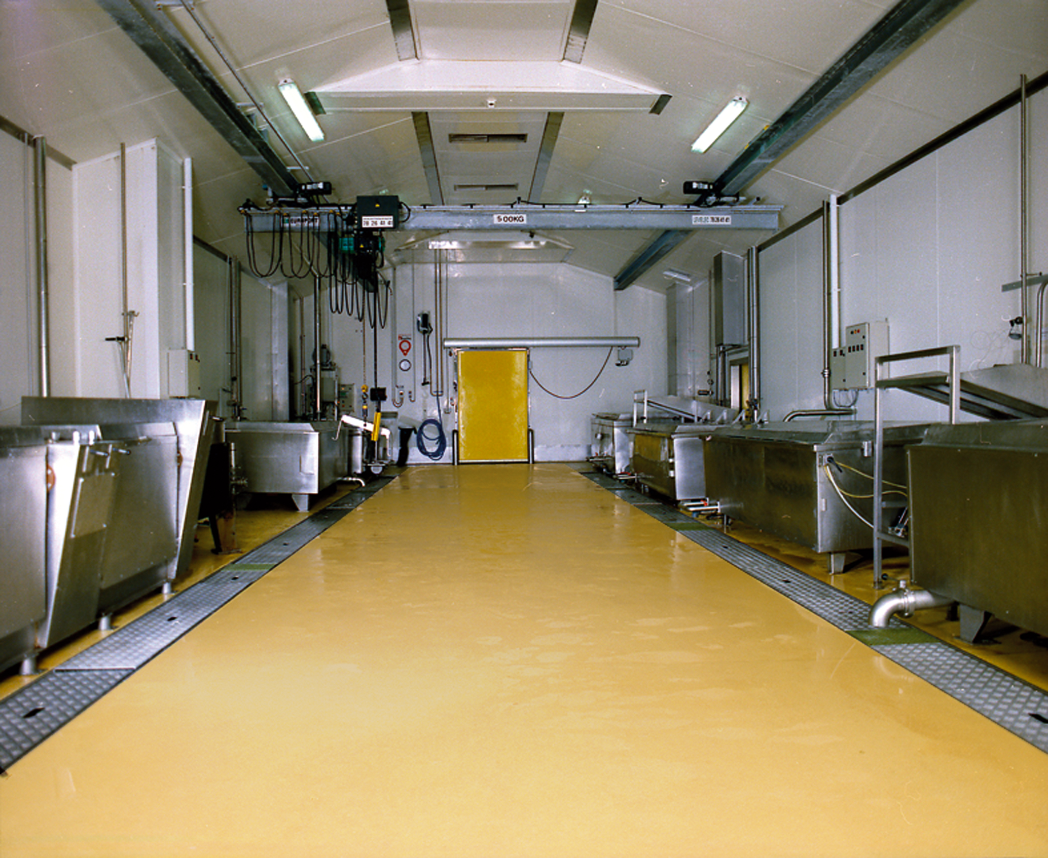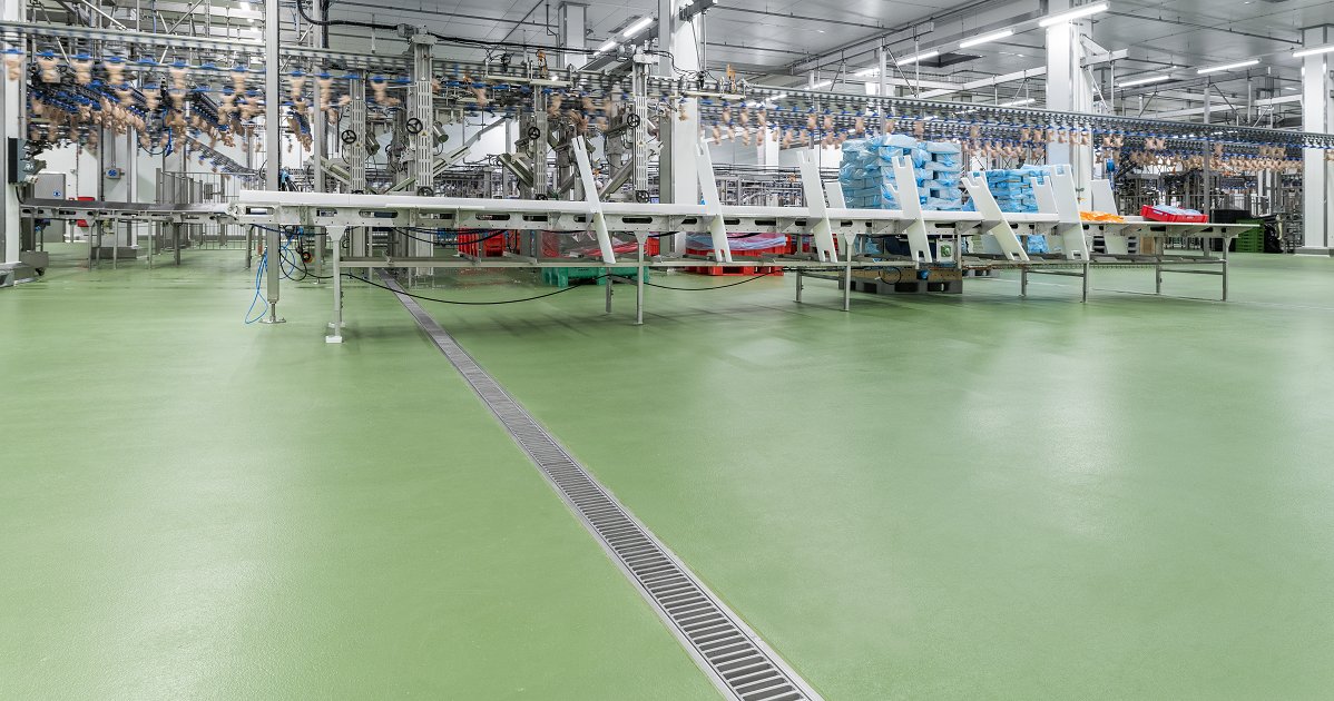 PU FLOORING COVERED WITH ICE IN A SEA FOOD PROCESSING PLANT